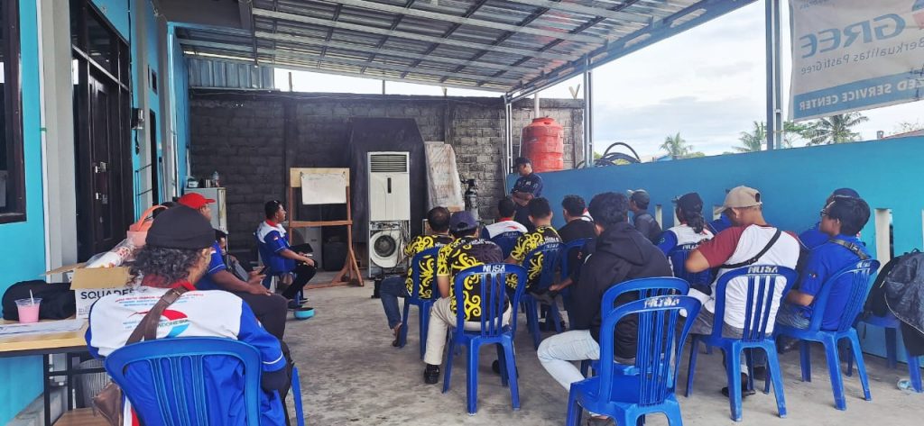 Pertemuan yang dimulai sejak pukul 10.00 WITA ini mengusung tema “Menjalin Silaturahmi Antar Anggota” serta dirangkaikan dengan pelatihan teknis bertajuk “Training AC Standing Floor” yang dipandu oleh Bapak Jefrianto selaku narasumber dari Daikin Authorized Service Partner. Pelatihan juga mendapat dukungan materi lapangan dari dua teknisi berpengalaman, yaitu Bapak Sudirman dan Bapak Wahid, yang turut berbagi insight terkait berbagai kasus penanganan AC di lapangan.